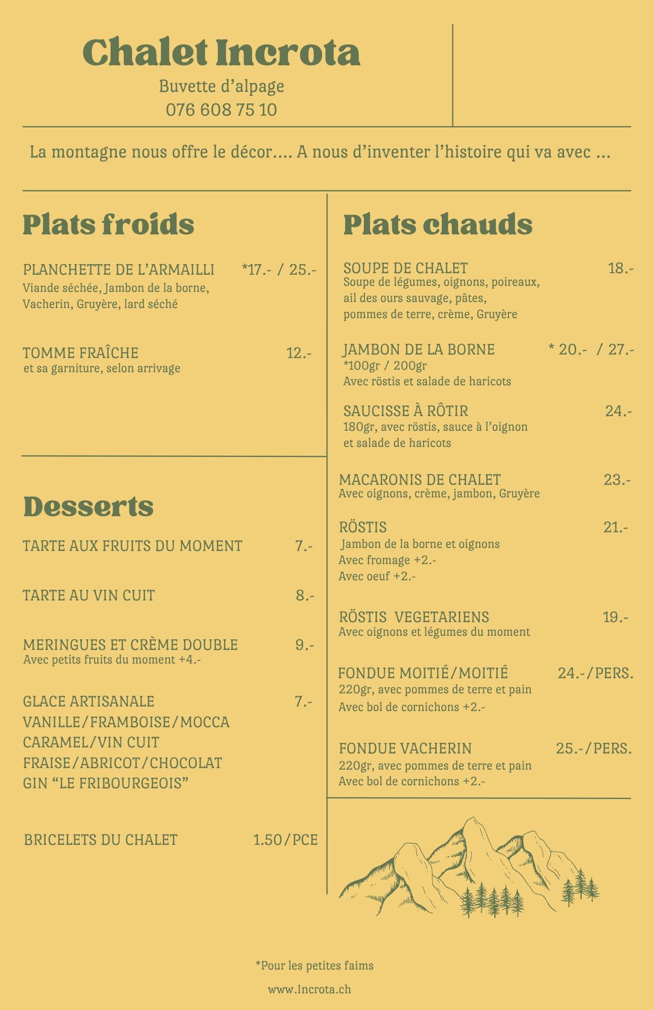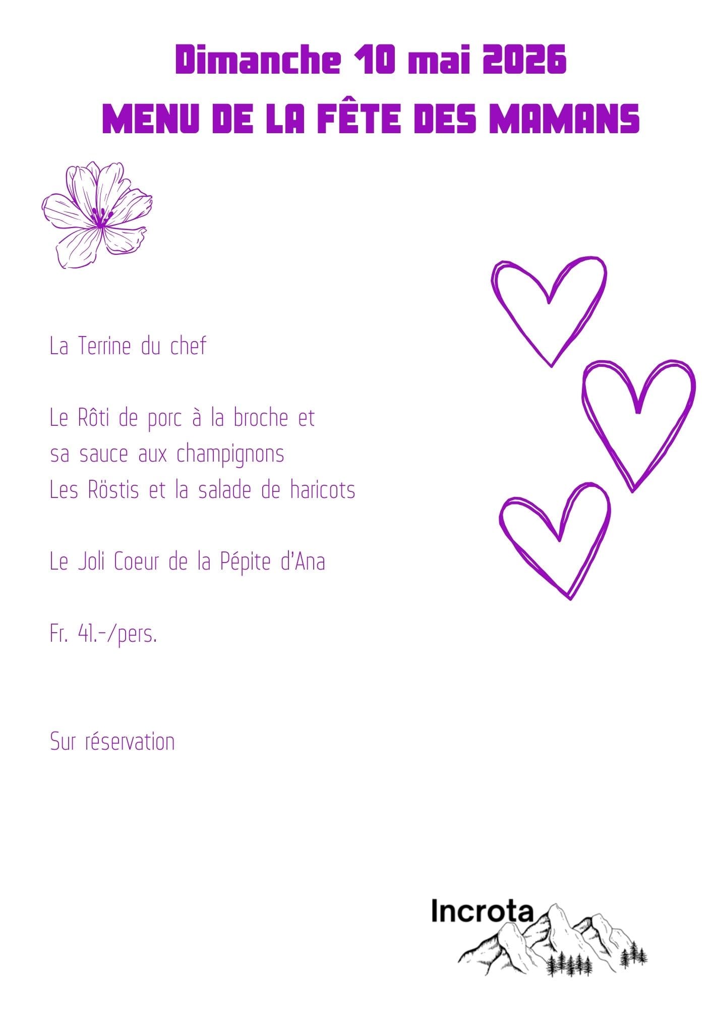 Réservations par téléphone uniquement au 076 608 75 10.
